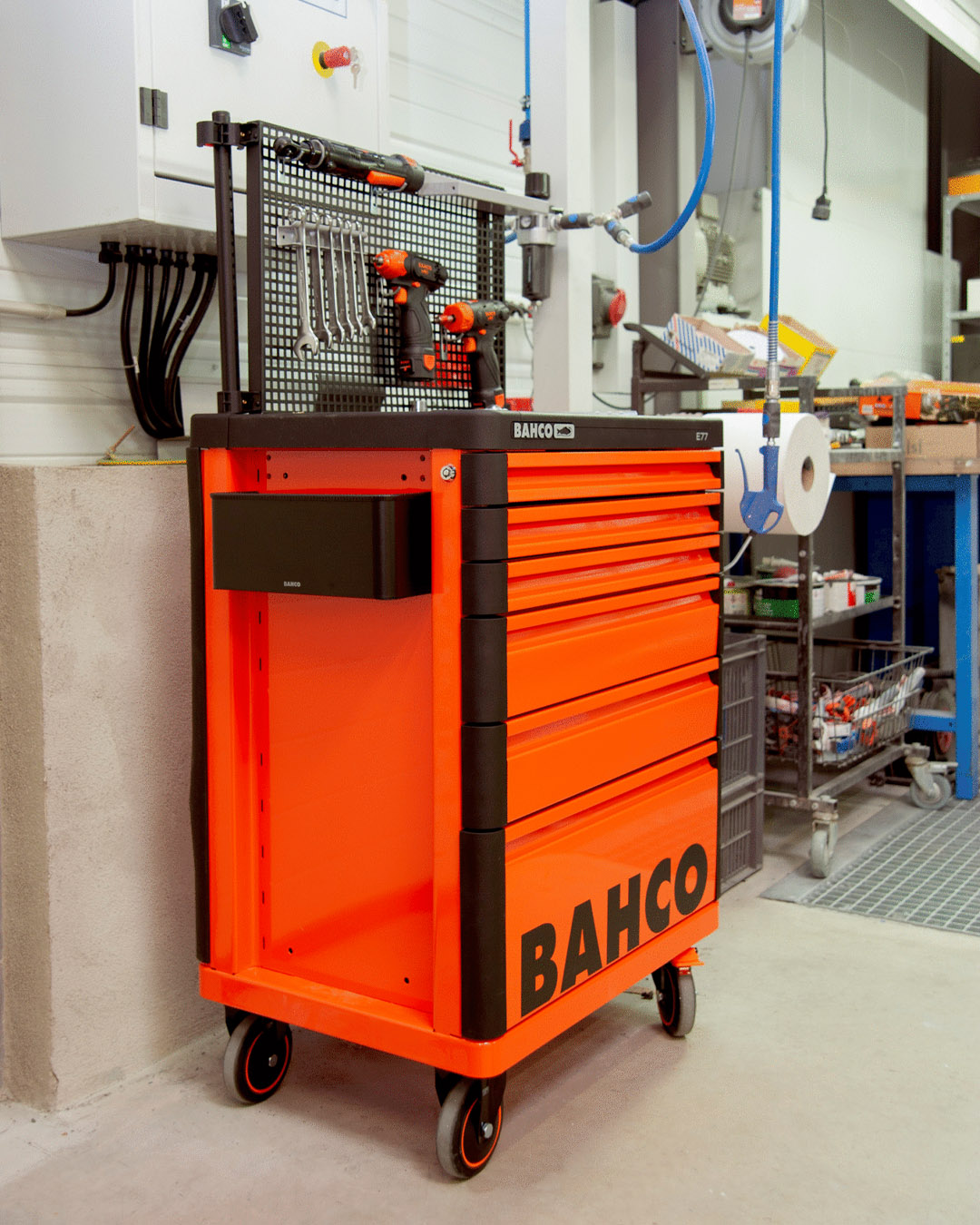- El carro de 9 cajones tiene un chasis de doble pared de acero resistente.