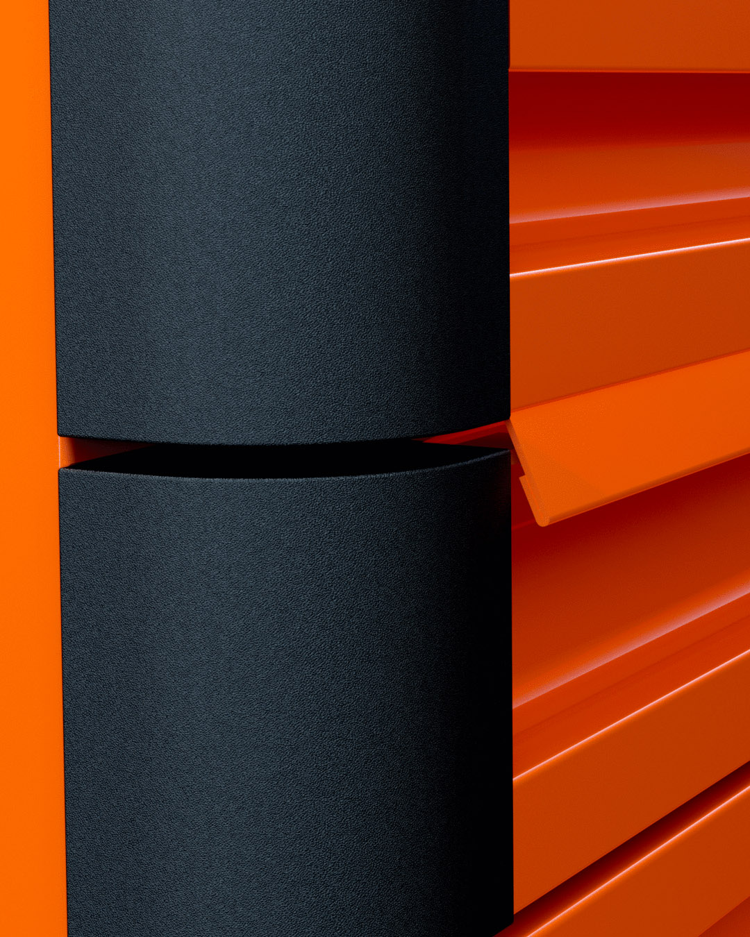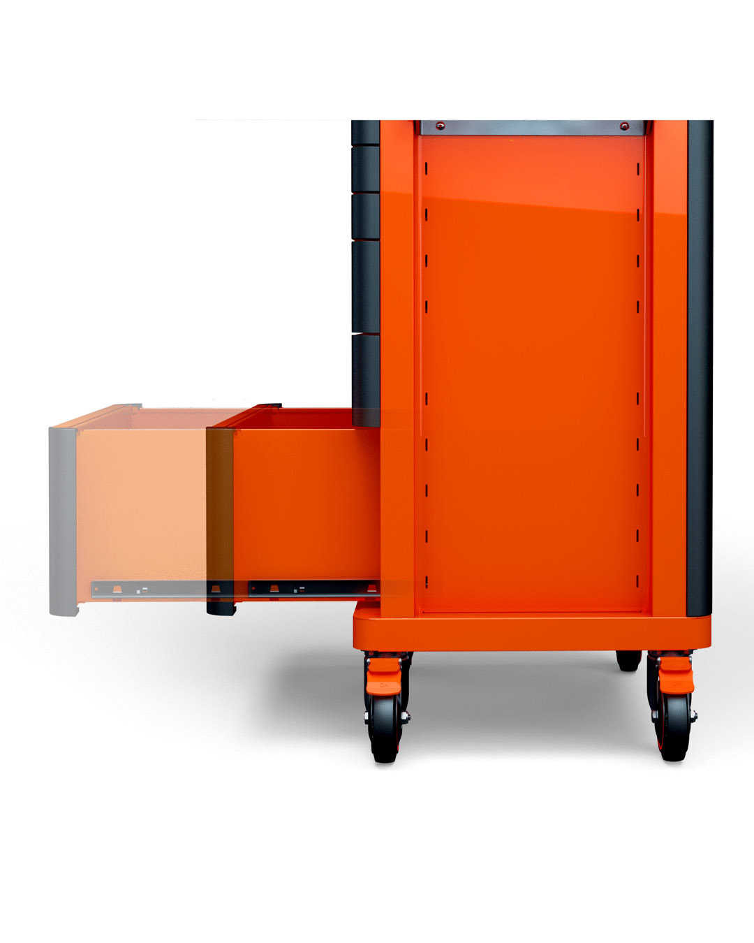 - Cajones totalmente abiertos con paragolpes individuales en las esquinas.