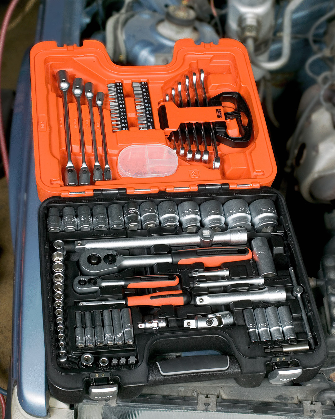 - 6 llaves combinadas: 8, 10, 12, 13, 14 y 17 mm, en un práctico estuche extraíble.