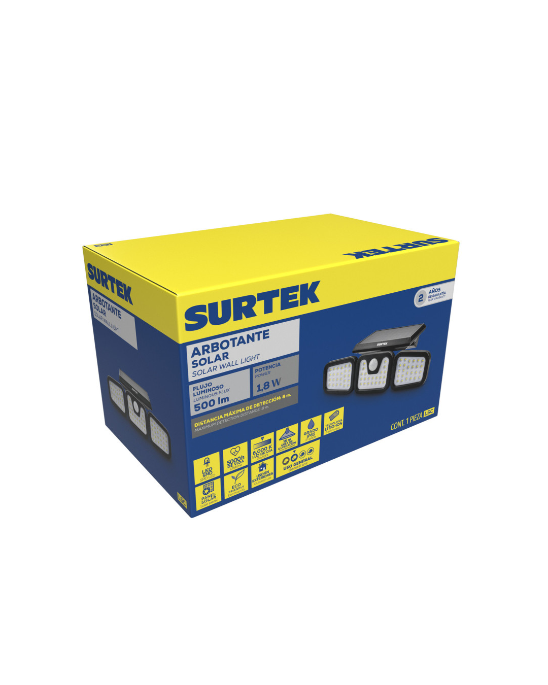 Lampara led solar con sensor de 500lm, para empotrar en pared Surtek