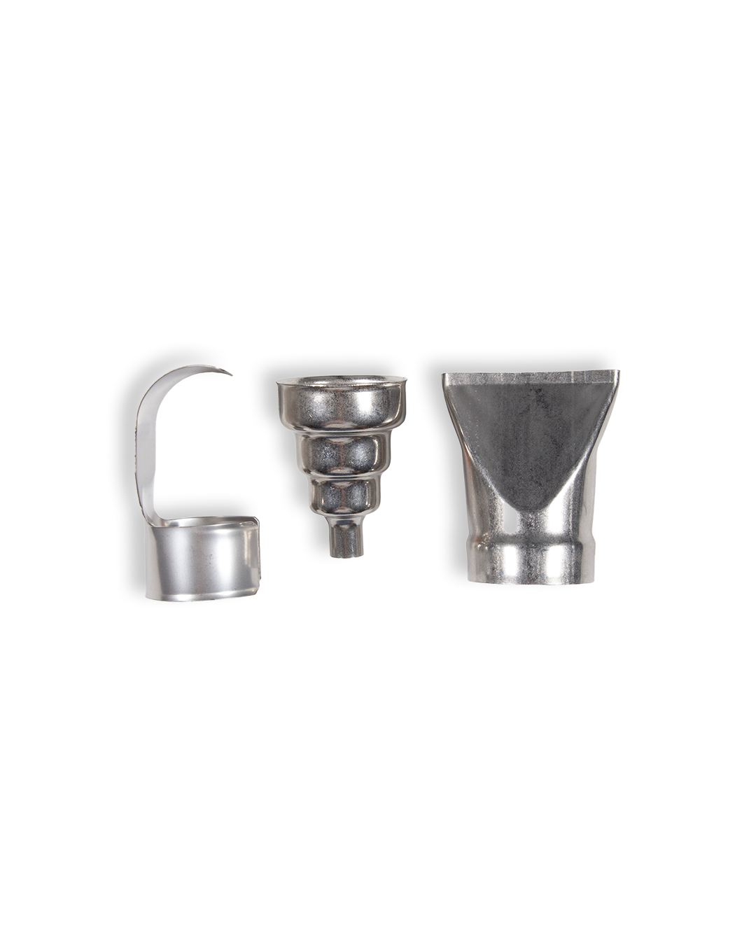 - Dirija el calor donde lo necesite con los accesorios incluidos: boquillas planas, concentradoras y reflectoras en forma de cuchara que protegen las áreas acabadas cerca de la pieza de trabajo y se desconectan rápidamente con un giro para evitar manipular piezas calientes.