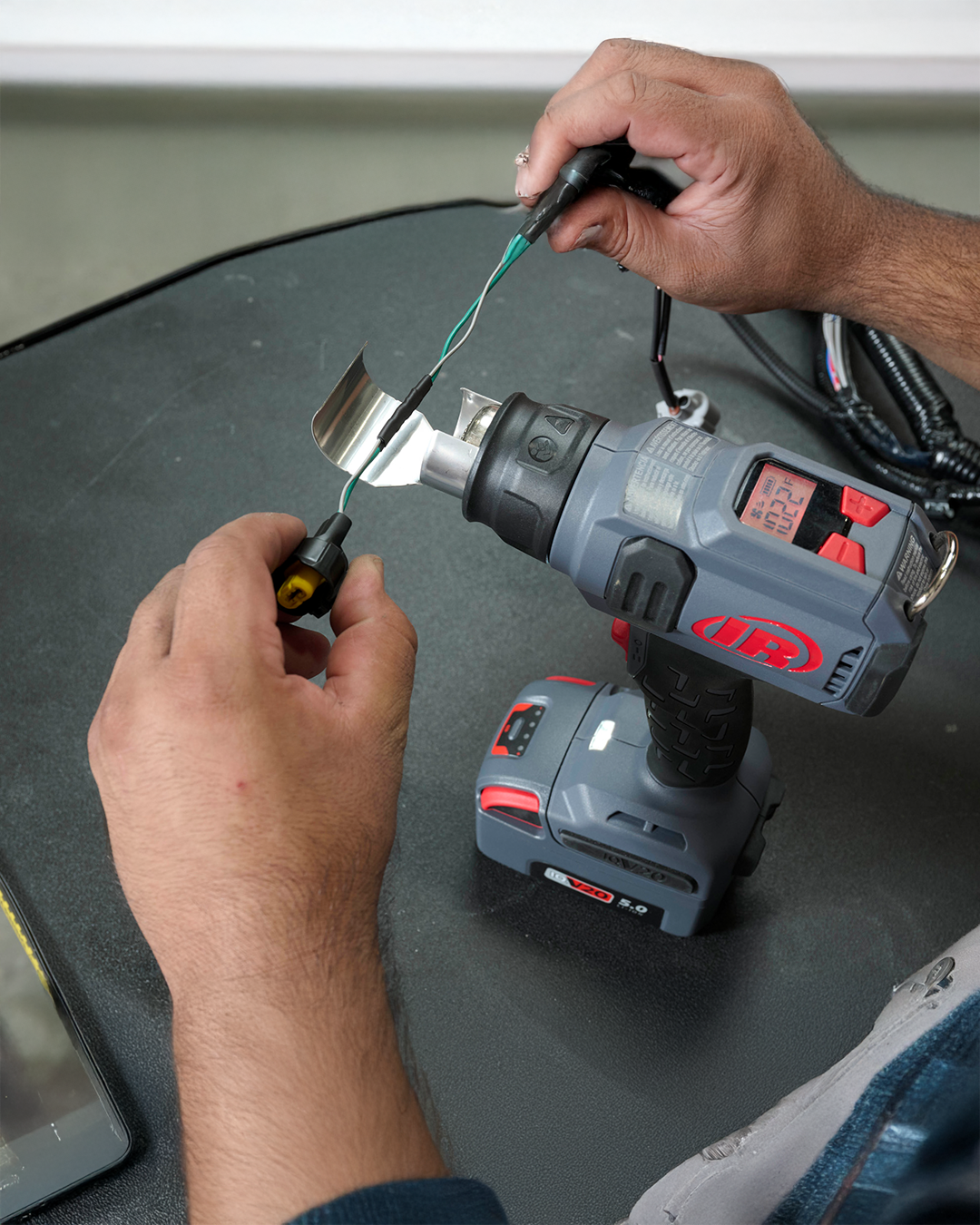 Cuando necesite calor con rapidez, la pistola de calor a batería IQV20™ de Ingersoll Rand® se lo proporcionará, alcanzando las temperaturas operativas necesarias hasta un 20 % más rápido que los principales productos inalámbricos de la competencia. Sus dos velocidades de flujo de aire y los ajustes de control de calor variables de hasta 550°C le permiten personalizar rápidamente la configuración de la pistola para adaptarse mejor a su aplicación.Tanto si se trata de proteger materiales delicados frente a un calentamiento excesivo como de quitar tornillos y tuercas oxidados con el máximo calor, esta herramienta portátil maximiza la productividad en un formato compacto que realmente aporta toda la potencia térmica.