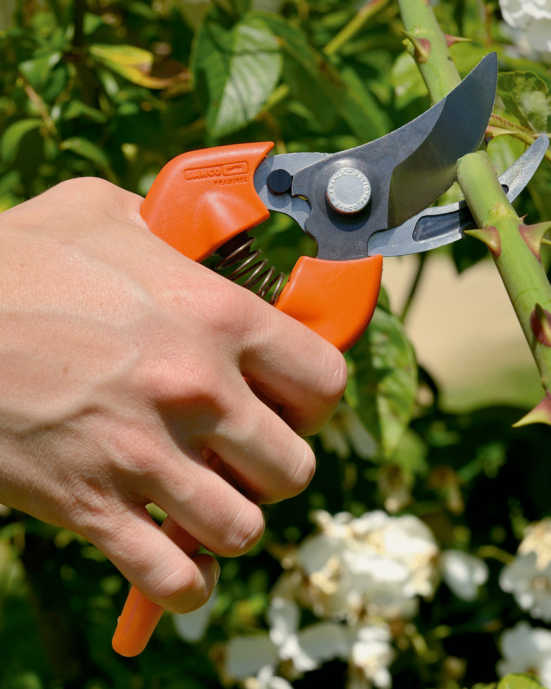 • Tijeras de podar de una mano con cabezal de corte estrecho para cortar flores, hierbas o arbustos.
