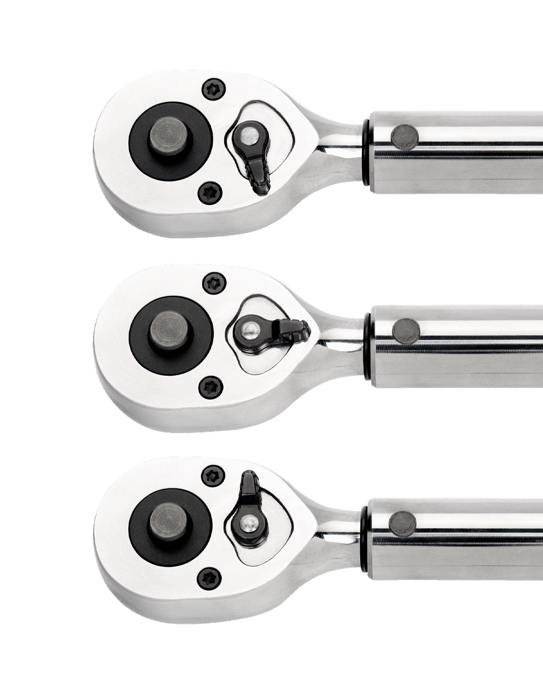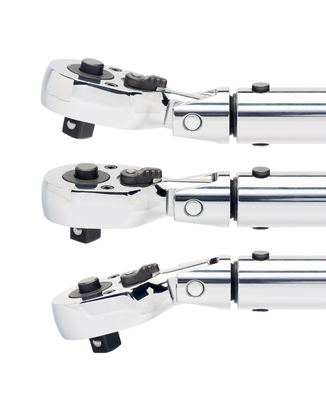- La cabeza de carraca flexible con sistema de liberación rápida de 32 dientes pivota 15 grados en ambas direcciones